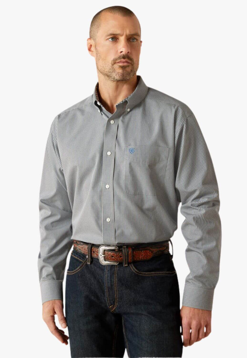 This Ariat button-up shirt offers a wrinkle-free finish with a generous fit for all-day comfort. Classic styling and durable cotton keep it looking sharp with minimal effort.