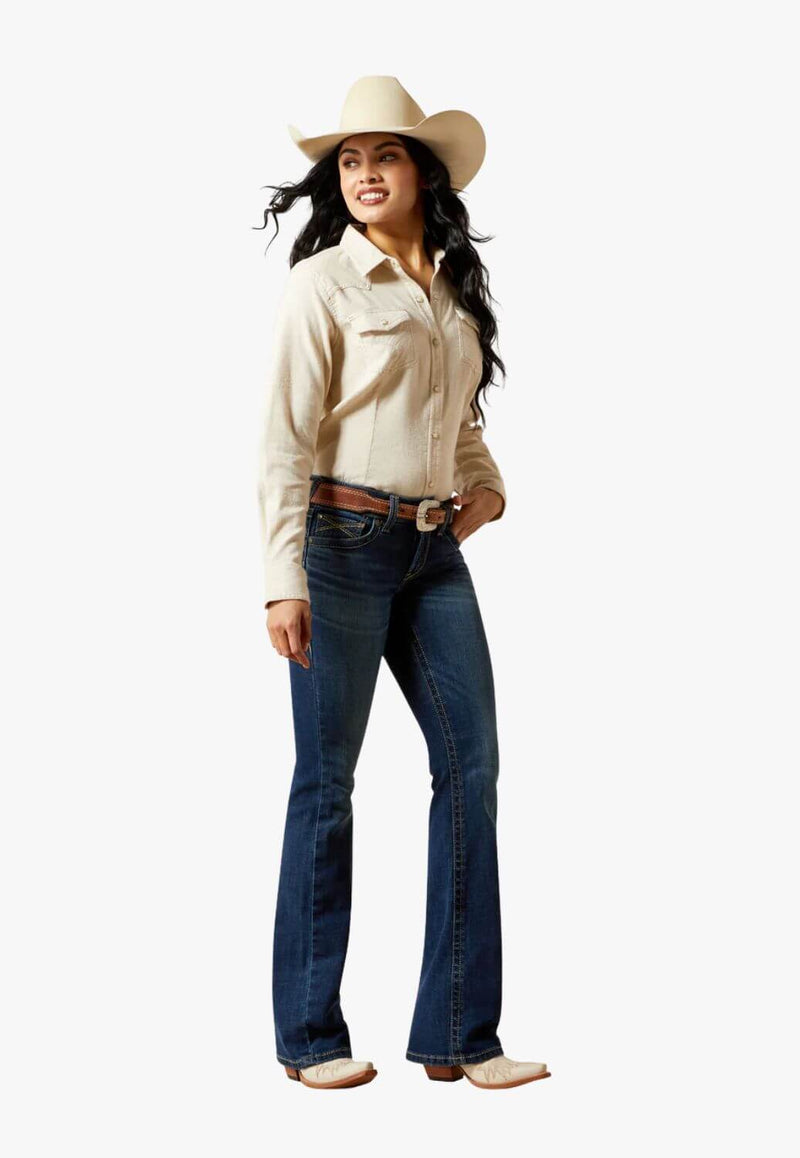 An everyday essential, this jean features a flattering perfect rise and a medium-blue wash denim with signature Ariat stitching - perfect with your favourite boots.