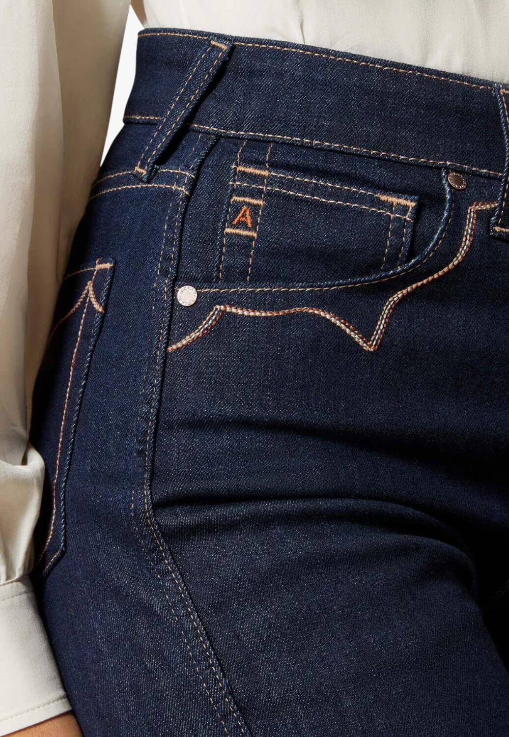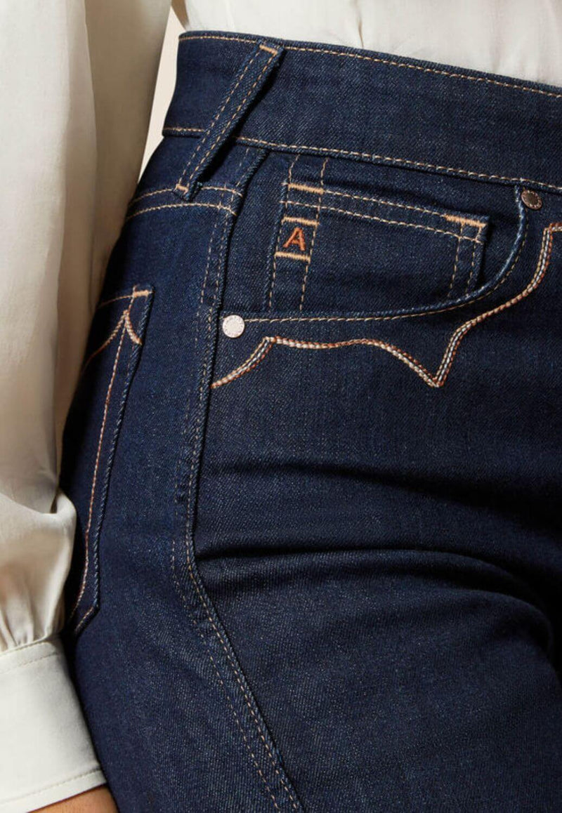 Wide leg jeans with an ultra high rise and fitted hip. Stretch denim provides comfort with a relaxed, flattering silhouette.