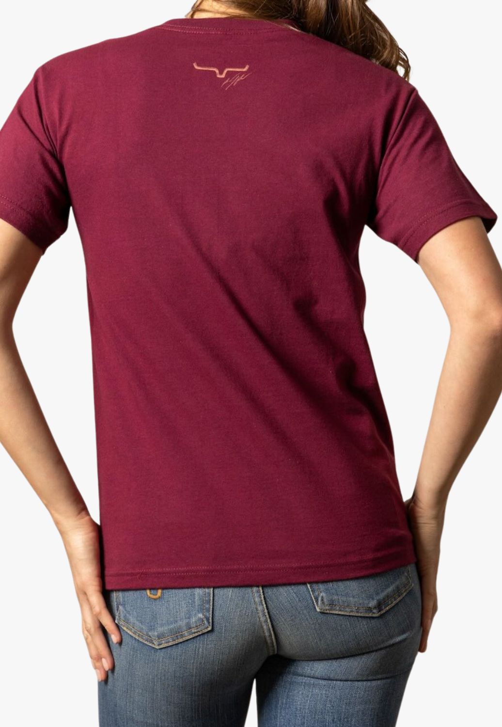 The Kimes Ranch Randy Bucking Away Tee comes in burgundy, crafted from soft 100% cotton for everyday comfort. Designed with a classic, easy fit.