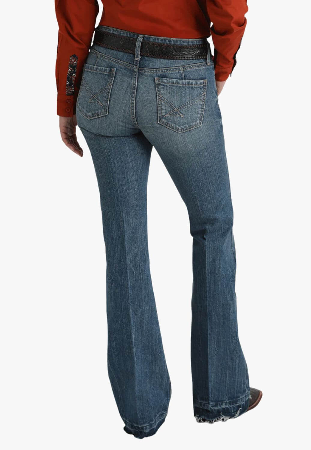 Runs a little small - 9 1/2" front rise, 21" bottom opening.