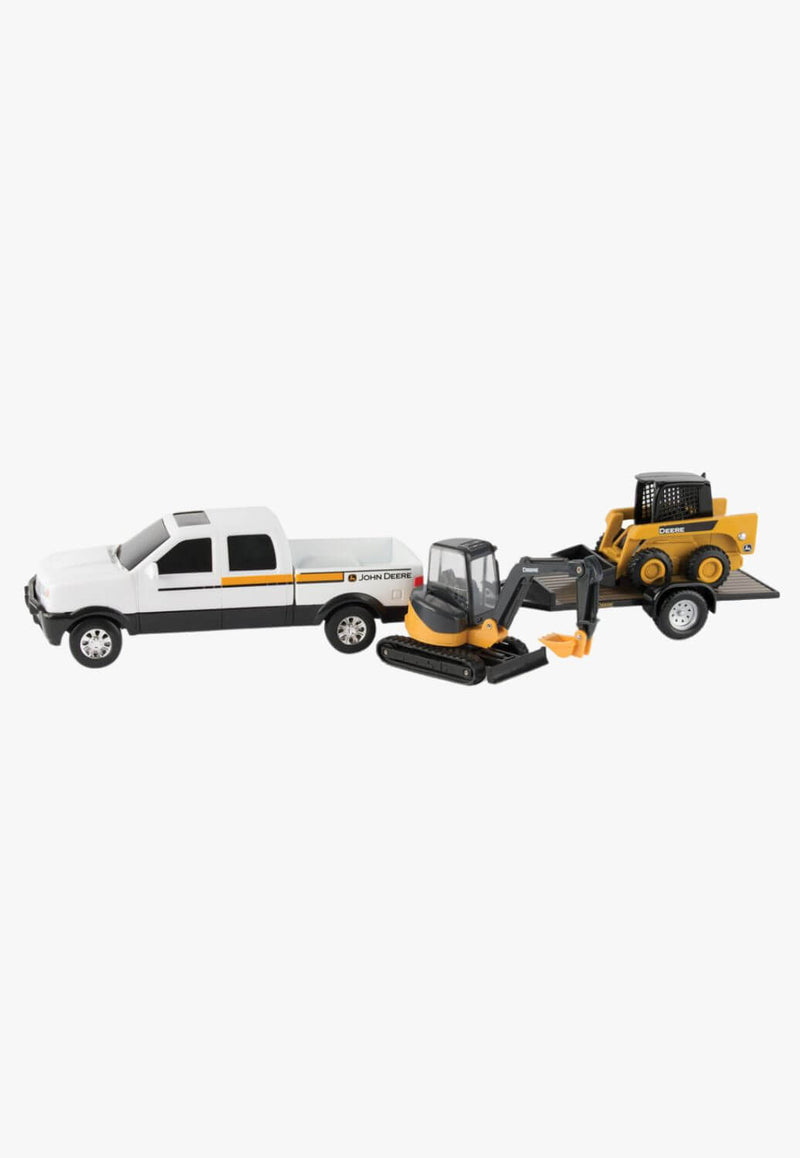 • Includes toy truck with trailer, skid loader & a tracked mini hoe