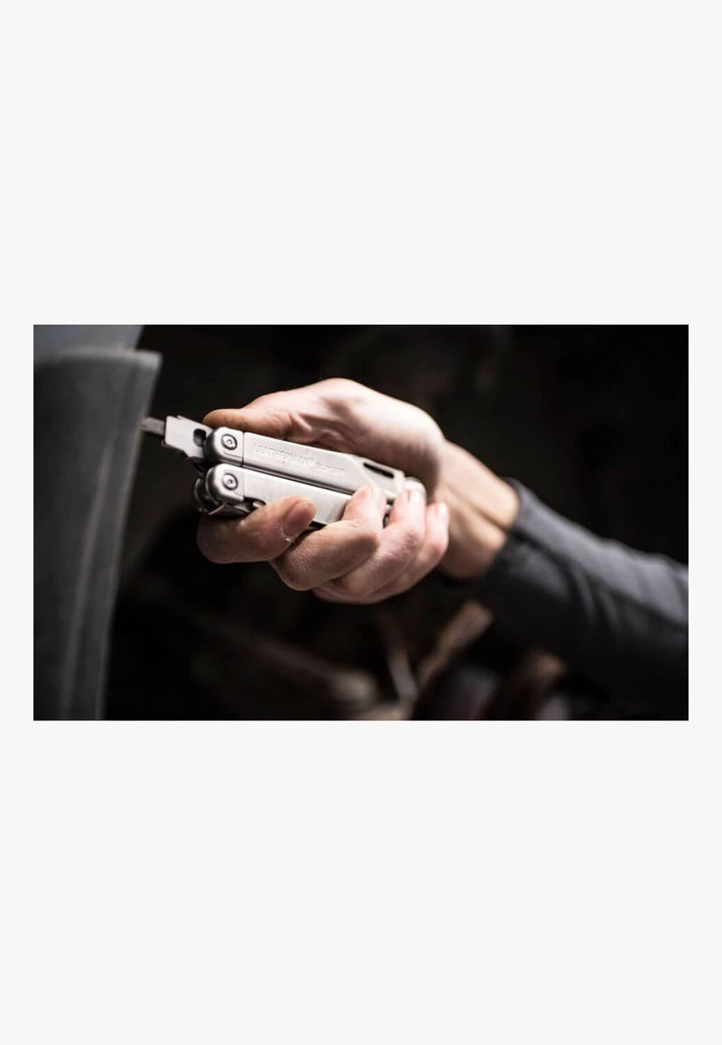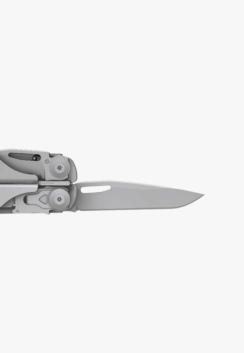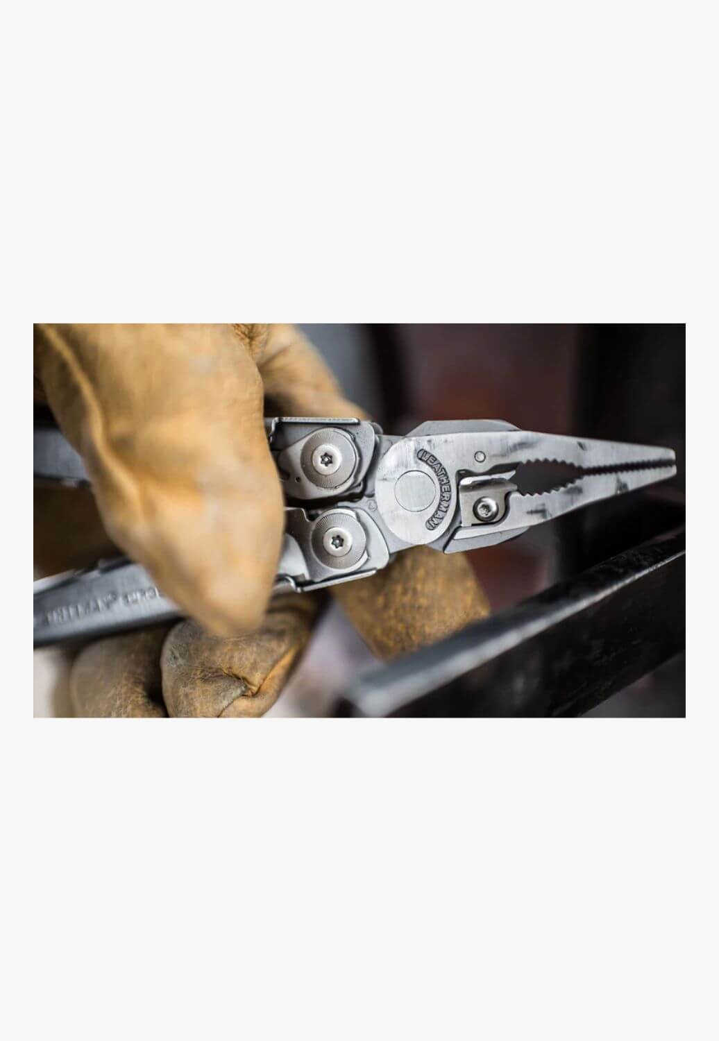 The Leatherman Surge is one of our two largest multi-tools; a real powerhouse, built with our largest pliers, longest multi-tool blades and easy-to-use locks. A unique blade exchanger, replaceable 154CM wire cutters and four outside-opening blades give you quick access to the tools you use most. Comes with black nylon button sheath. The Surge was built for tough jobs and the hands that do them.