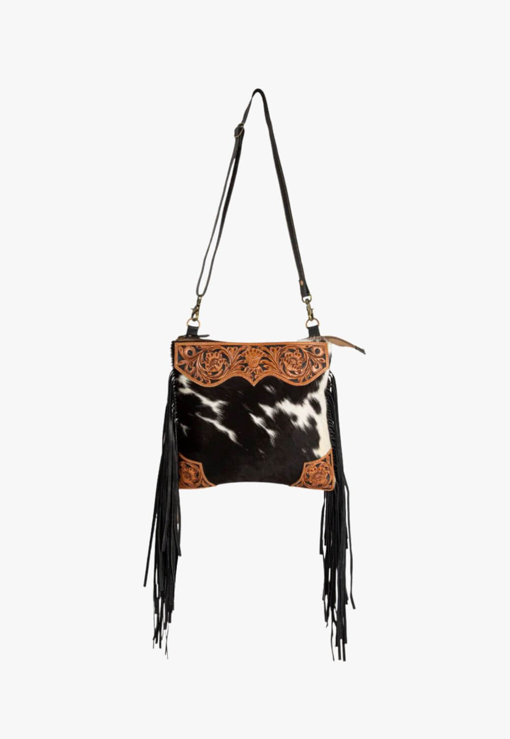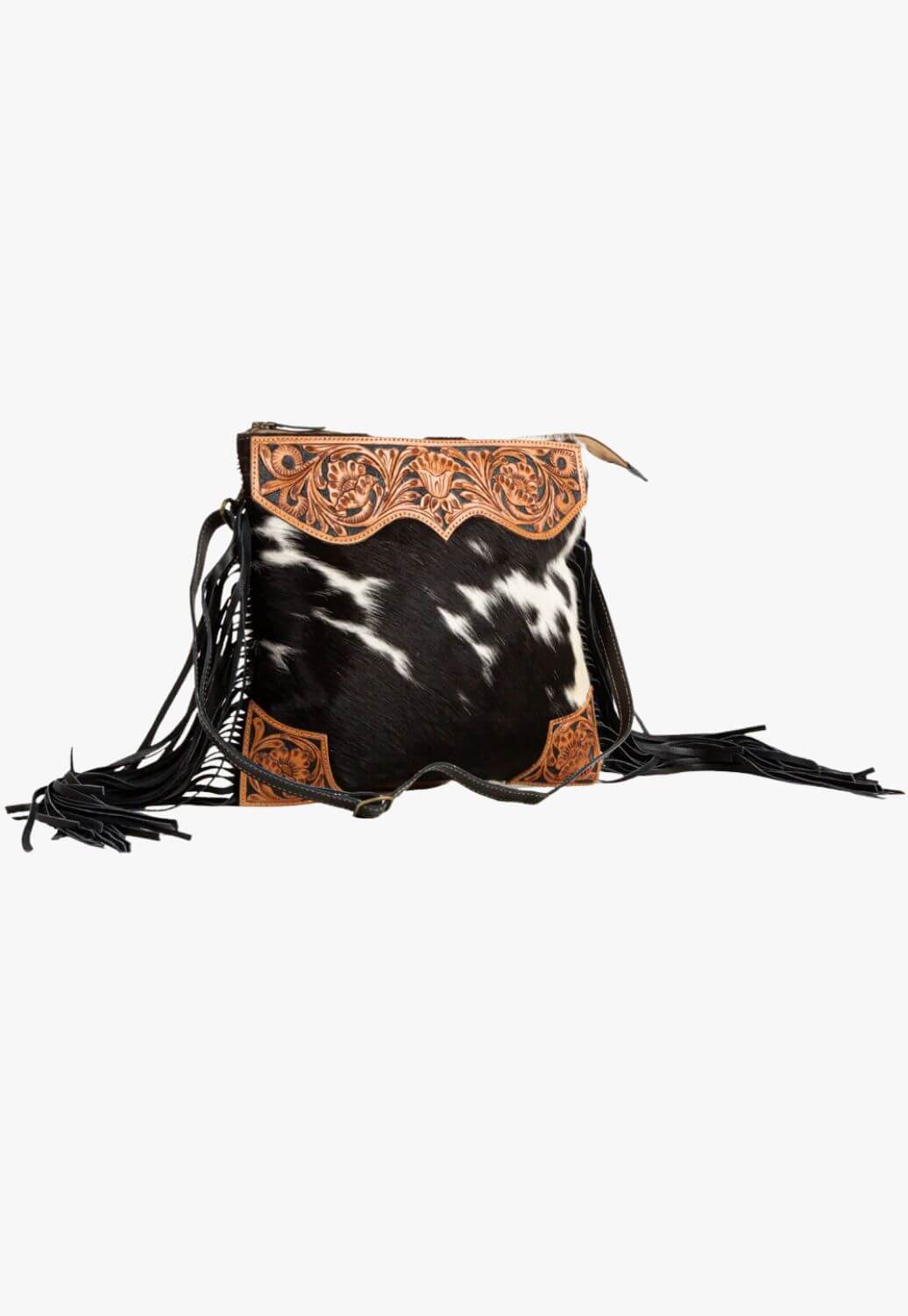 Myra Tumbleweed Trail Fringed Hand-Tooled Bag