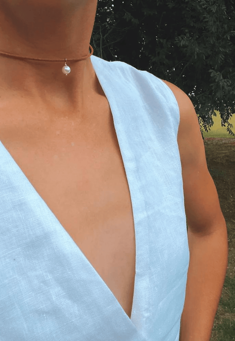 • Super cute dainty leather necklace with freshwater pearl pendant - available in gold in silver