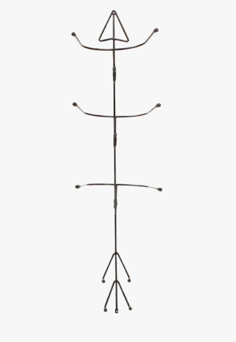 Keep your hats organized with this black metal rack, designed to hold up to three hats. Features a stylish arrow design that doubles as wall décor.
